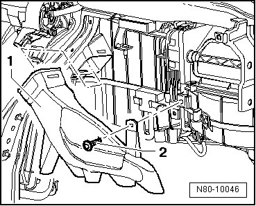 - Remove the screws - 2 - (1.5 +/- 0.2 Nm) and then remove the footwell vent - 1 -.