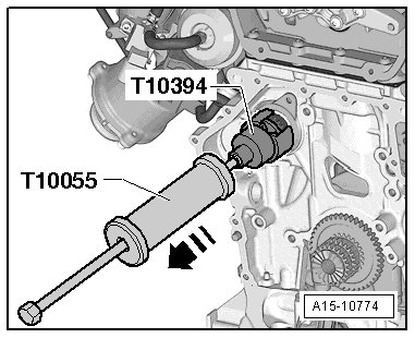 - Install the puller (T10055) to the puller (T10394) and remove the balance shaft.