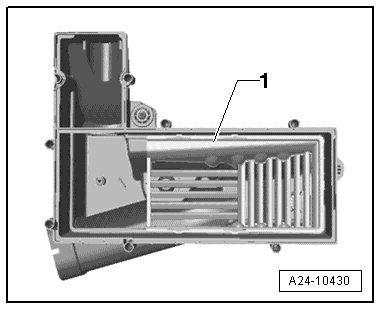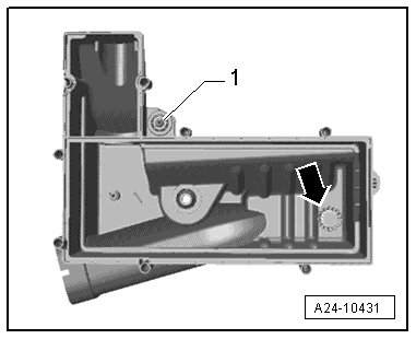 - Set the upper air filter housing onto the lower air filter housing, without using much force. When doing this, make sure that the upper air filter housing is not placed crooked on the air filter element. Check the sealing lip on the air filter element.