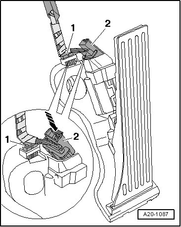 - Disconnect the Accelerator Pedal Position Sensor 1 (G79)/Accelerator Pedal Position Sensor 2 (G185) 6 pin electrical harness connector - 2 -.