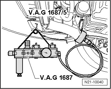 • Before removing the end seal, discharge the pressure in the testing circuit by pulling off the coupling from the end seal (V.A.G 1687/5).