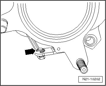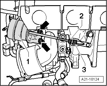 - Remove the vacuum diaphragm bolts - arrows - and remove the vacuum diaphragm - 1 - from the turbocharger.