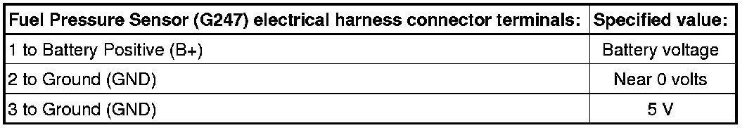 - Using a multimeter, check the Fuel Pressure Sensor (G247) view - 1 - electrical harness connector terminals for voltage.