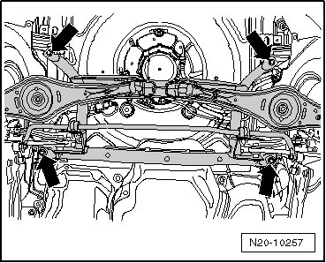 - Loosen the rear subframe bolts - arrows -.