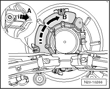 - Release the straps - A - using a screwdriver. Rotate the Evaporative Emission EVAP canister approximately 90° clockwise - B - and remove the EVAP canister.
