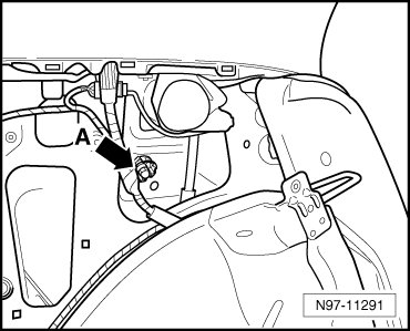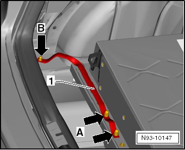 (50) - Ground connection inside the luggage compartment on the left side -arrow B-