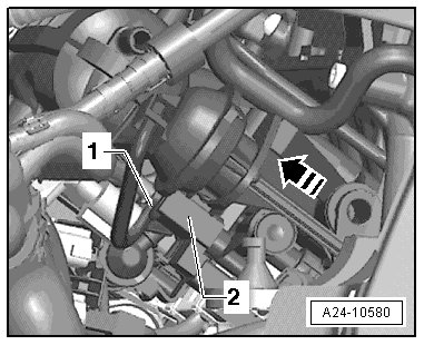 - Remove the adjusting element vacuum hose - 1 - from the intake manifold runner control valve - 2 -.