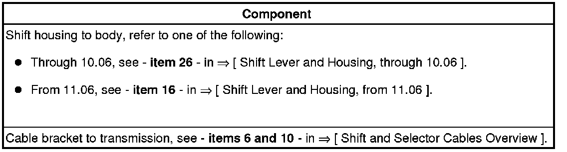 Allocation of cable retainers, refer to => [ Cable Retainer Allocation ] Shift and Selector Cables Overview.