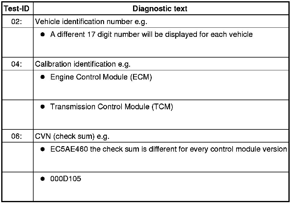 Diagnostic Mode 09 makes it possible to access vehicle-specific information from the ECM and the TCM (where applicable).