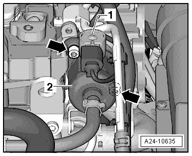 • Removing and installing, refer to => [ Camshaft Adjustment Valve 1 N205 ] Service and Repair.