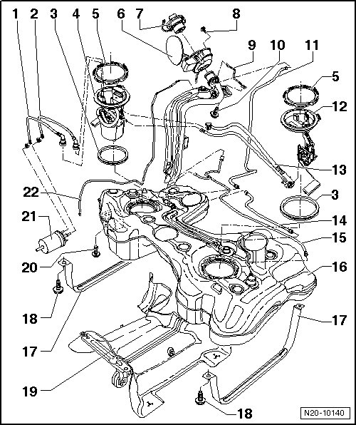 22 - Fuel Pump Control Module -J538- with Fuel level sensor -G- and Transfer fuel pump -G6-