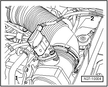 - Release and disconnect the connector - 1 - and loosen the spring clamp - 2 - using (VAS 5024).
