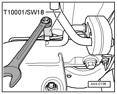 - Loosen nut - A - of threaded connection of upper transverse link at subframe.
