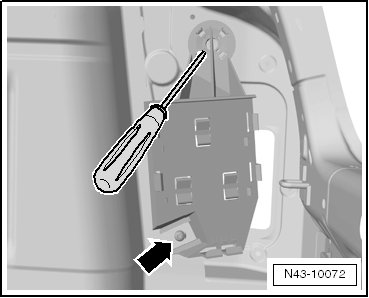 - Push the 4 tabs on the bracket outward with a screwdriver, one after the other. When doing this, tilt the bracket slightly and then turn it clockwise and remove it.
