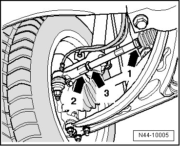 - Loosen spring clamp - 1 - using (V.A.G 1275) from bellows and slide onto tie rod.