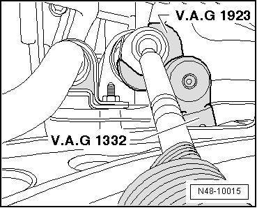 - Loosen spring clamp (item - 1 - in illustration N44-10005 ) using (V.A.G 1275) from bellows and slide onto tie rod.
