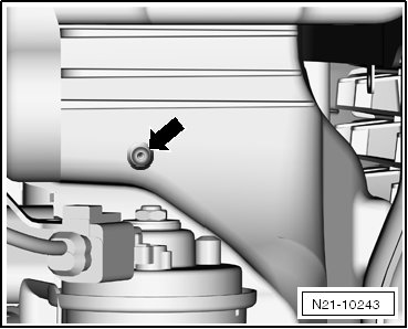 • Hose connections and charge air system hoses must be free of oil and grease before installing. For connector couplings, the seal and sealing surfaces must only be lightly oiled. Refer to => [ Charge Air Hose, Disconnecting and Connecting ] Charge Air Hose, Disconnecting and Connecting.