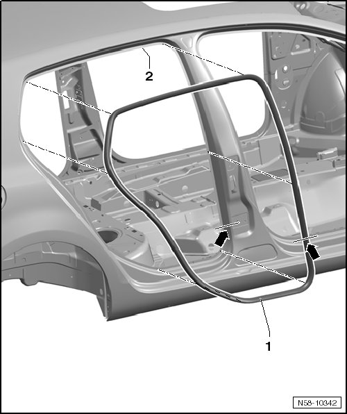 - Remove the inner door seal - 1 - from the body flange - 2 -.