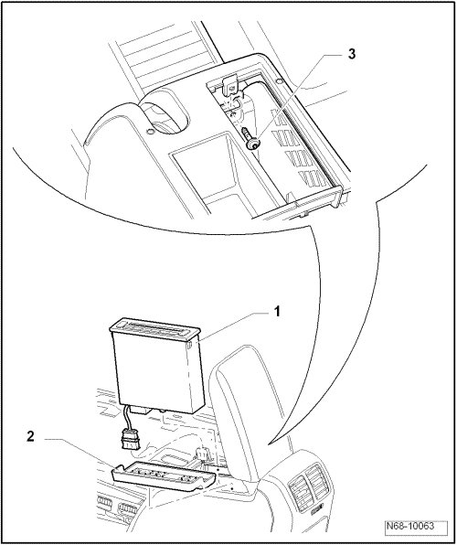 - Remove the ashtray - 1 - from center console and (depending on vehicle equipment) disconnect the wiring harnesses.