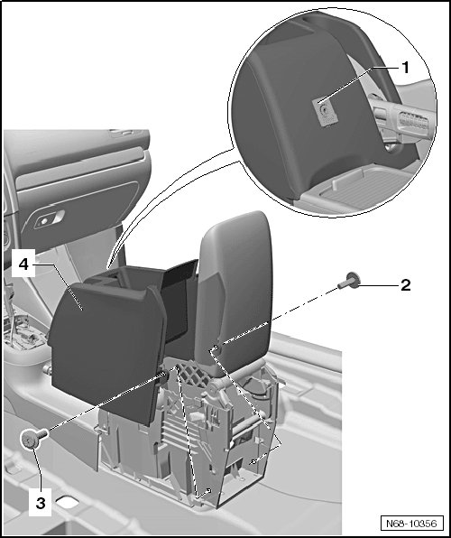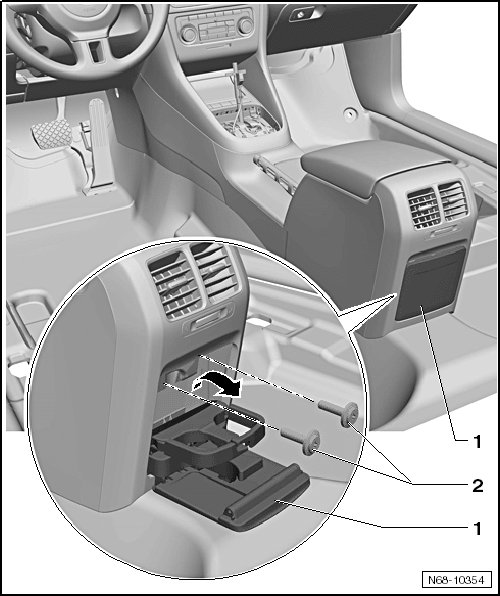 - Open beverage holder - 1 - and remove two bolts - 2 - (1.5 Nm).