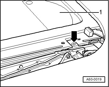 - Remove the rear screws - arrow - on the left and right side. Slide the spring glider to the rear and remove the sun visor - 1 -.