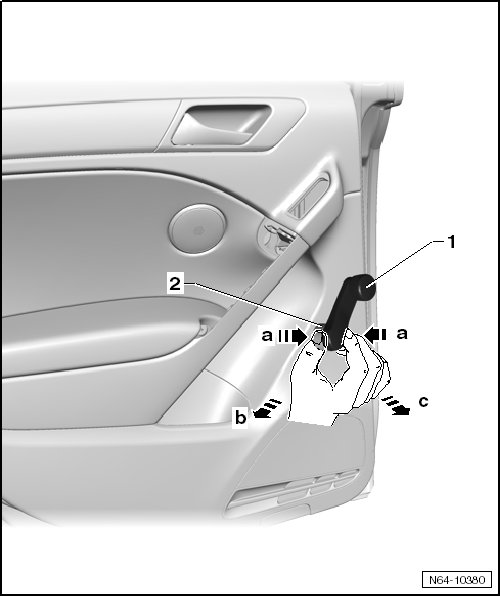 - Pull the locking ring - 2 - just a little under the window crank - 1 - - arrow b -.
