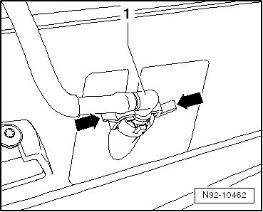 - Press both side tabs - arrows - together and pull the spray nozzle - 1 - out of the spoiler on the edge of the roof.
