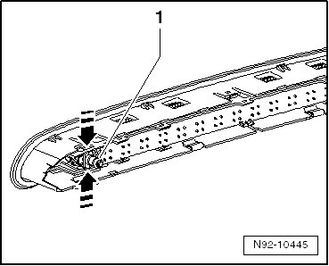 - Open both tabs - arrows - and pull the spray nozzle - 1 - out of the high-mounted brake lamp.