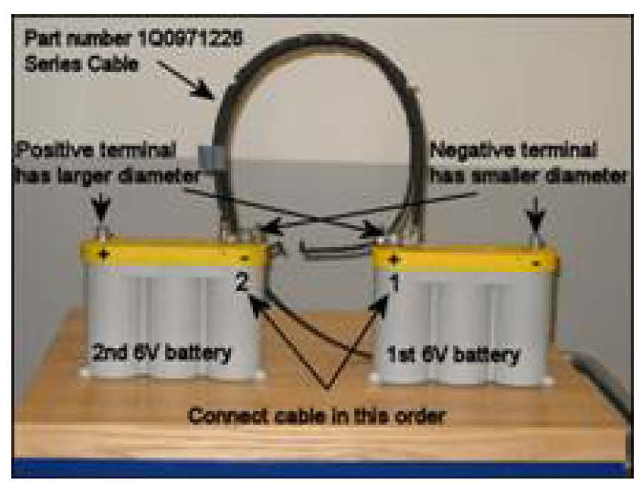 If batteries have been removed from vehicle, never attempt to test/charge one 6-volt battery; as stated above. Treat batteries as a 12-volt system.
