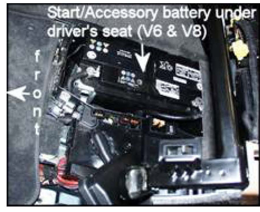 ^ Select AGM (Absorbed Glass Mat) for 4.2L and 6.0L engines (located in left side trunk).