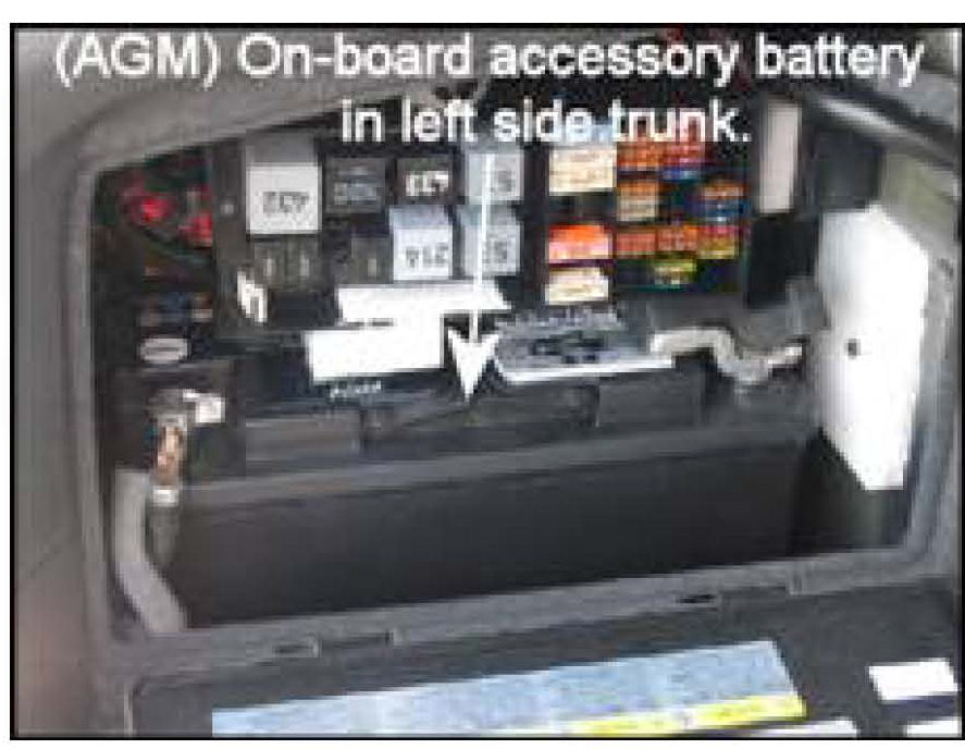 ^ (AGM) On-board accessory battery located in left side trunk DIN or 520 DIN.