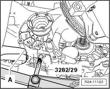 - Install the transmission support (3282) to the engine-/gearbox jack (V.A.G 1383 A).