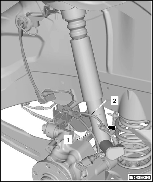 The wire must be mounted in the retainer on the shock absorber - arrow -