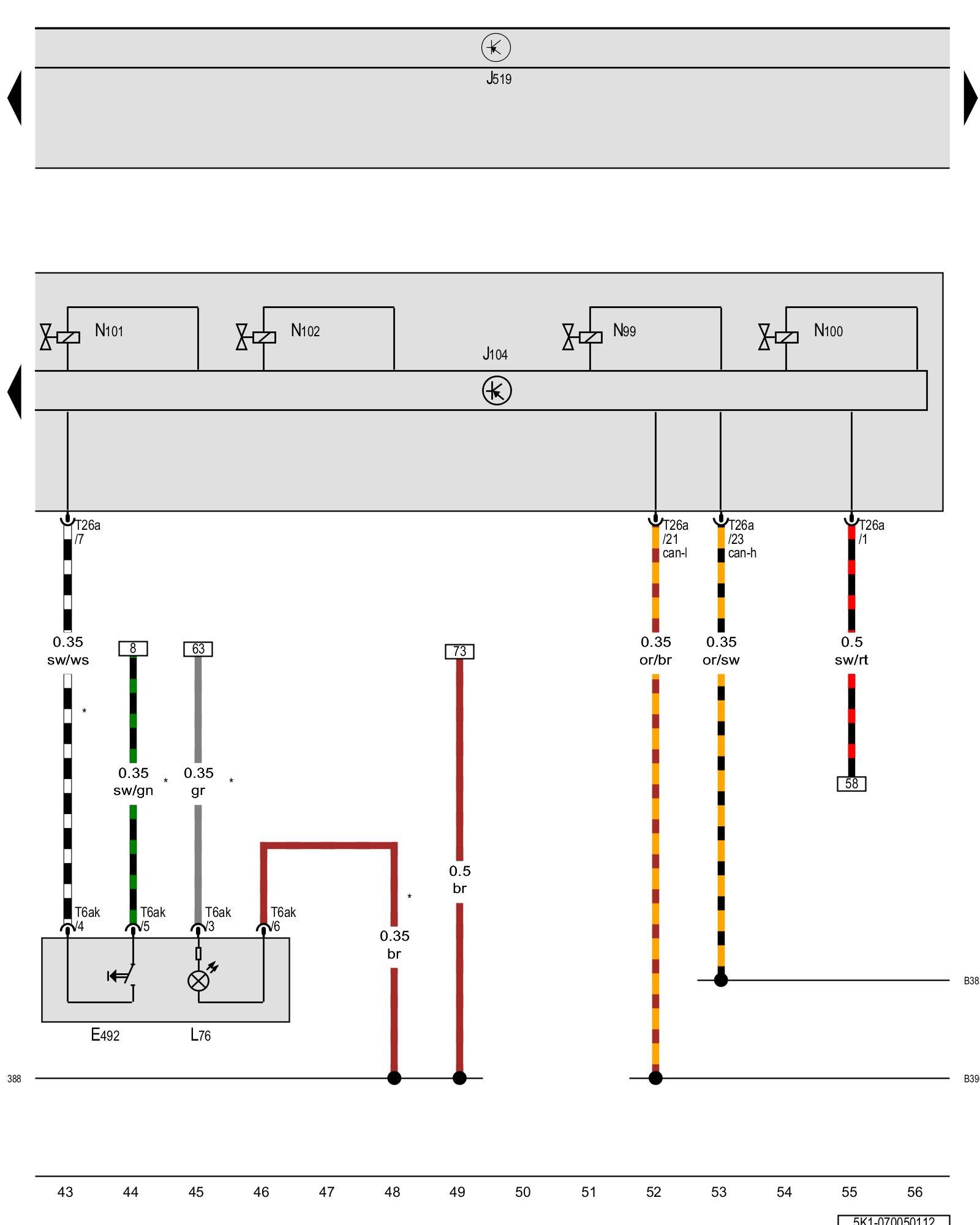 J104 - ABS control module, in the engine compartment, right Control modules in front part of vehicle - Overview of Control Modules [1][2]Diagrams